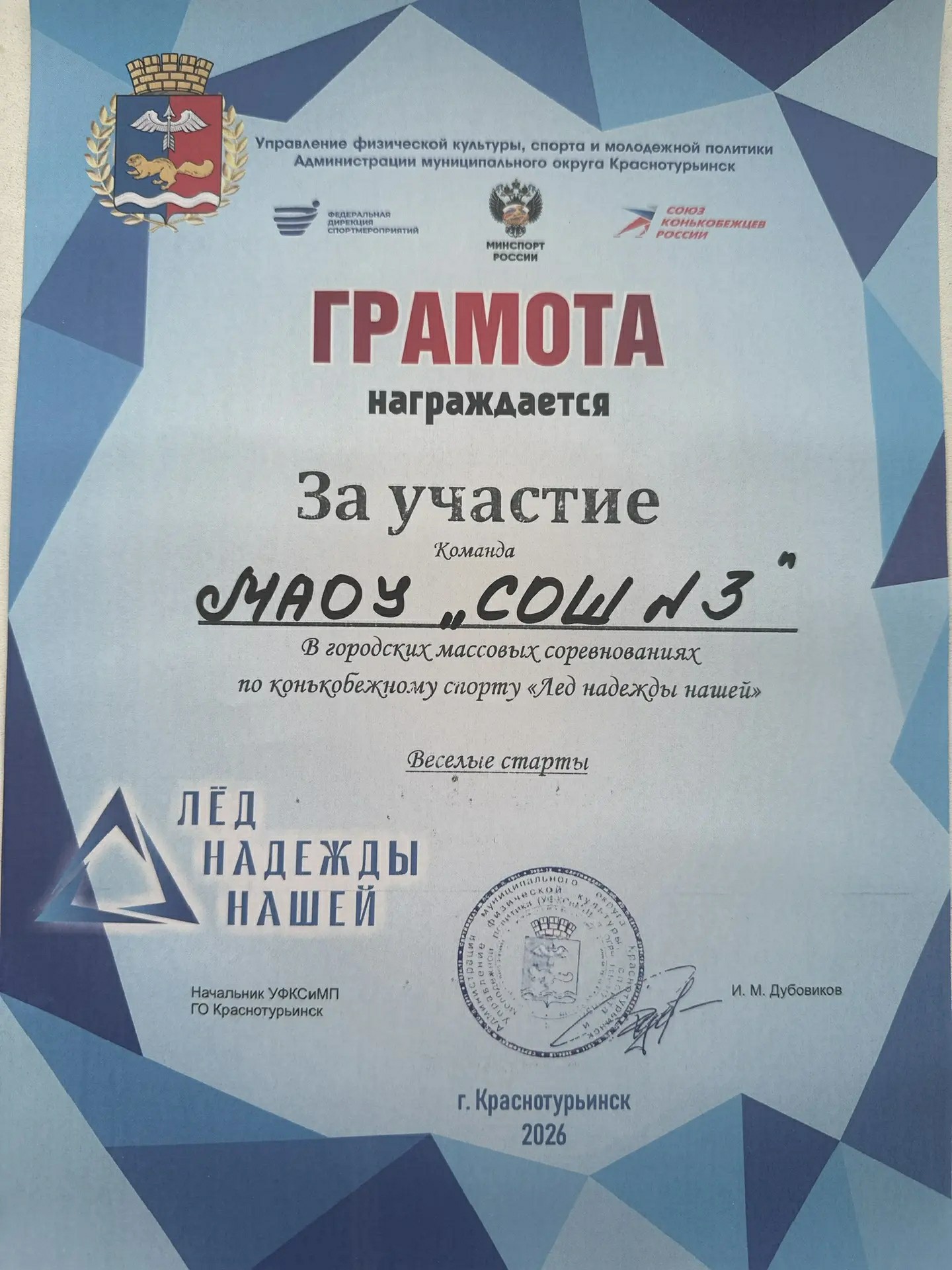 На льду — команда нашей школы! «Лёд надежды нашей – 2026»